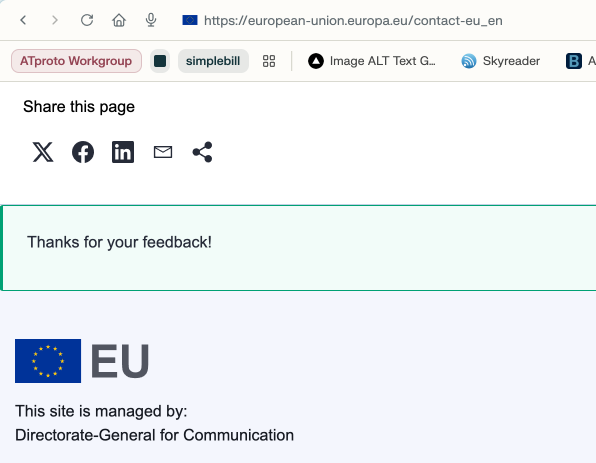 Currently, many EU pages prominently offer sharing via large, centralised platforms such as X (formerly Twitter), Facebook and LinkedIn. This practice has several negative consequences: